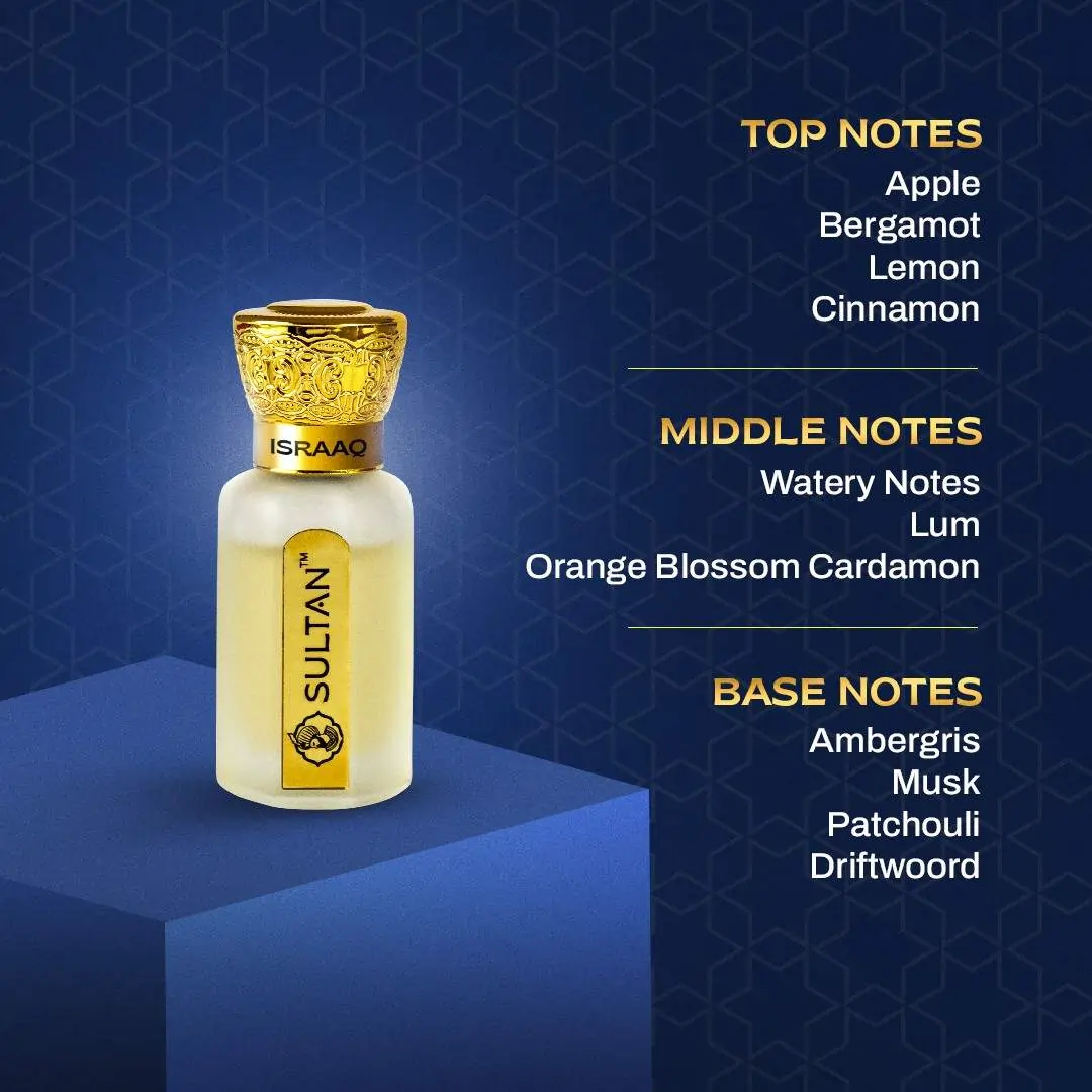 Israaq, on the other hand, greets you with a lively blend of apple, bergamot, and lemon, enhanced by a touch of cinnamon. Its heart reveals soothing watery notes, orange blossom, and exotic cardamom, delivering a fresh yet rich aroma. The base of ambergris, musk, patchouli, and driftwood ensures a long-lasting and memorable scent.